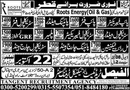 Qatar Oil and Gas Company Jobs 2025, if you are looking for a golden opportunity to work abroad, especially in the Gulf countries, then this is your chance! Roots Energy (Oil & Gas) in Qatar has announced urgent job openings for skilled and semi-skilled workers from Pakistan. These vacancies are being offered through Al-Faisal Trade Test & Technical Training Center, Rawalpindi, and Tangent Recruitment Agency.